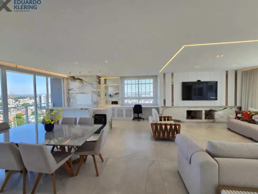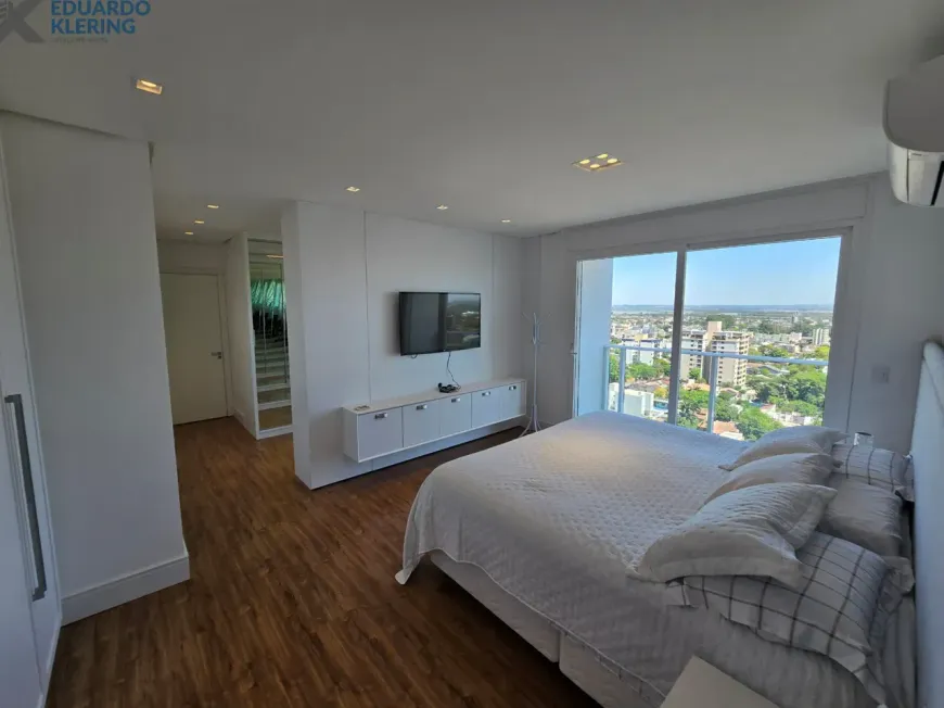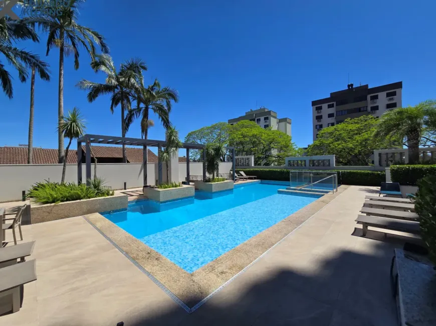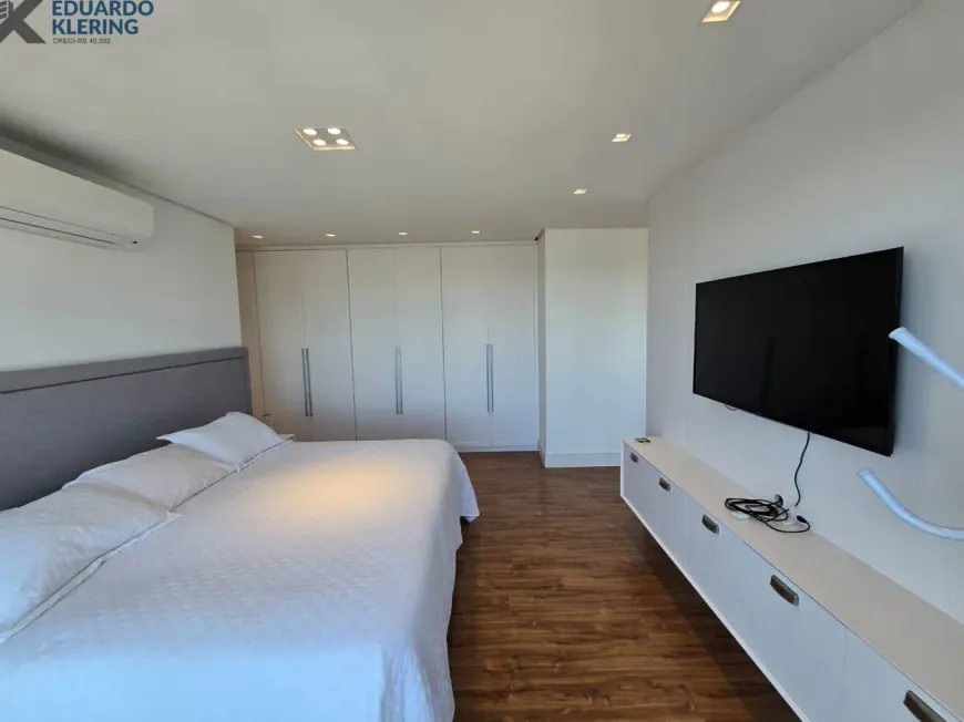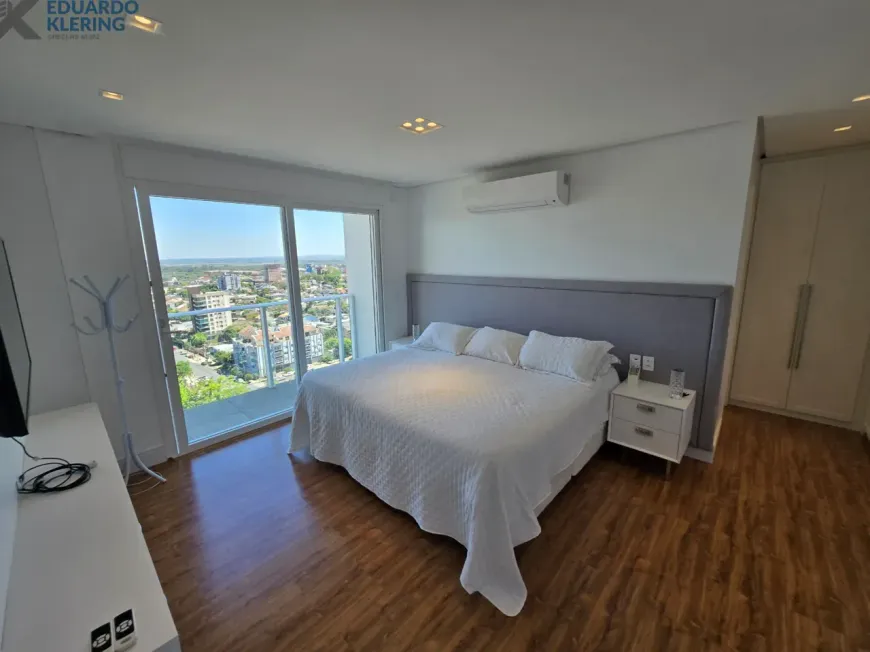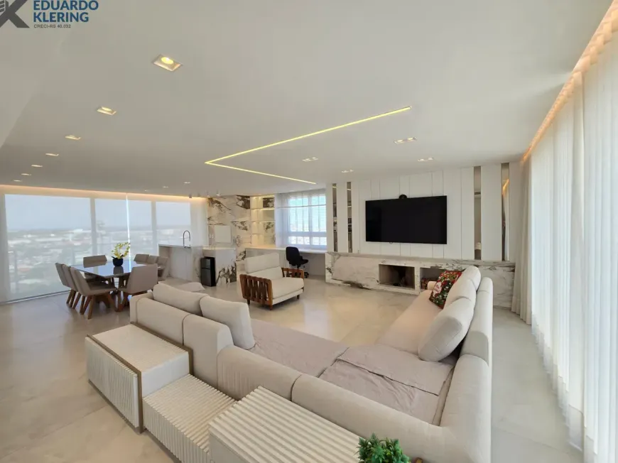 NOVIDADE! Extraordinária oportunidade de moradia neste amplo, lindo e exclusivo apartamento “padrão luxo” semimobiliado e equipado, com 3 suítes (principal com mais de 30m², closet, sacada e “espera” para hidromassagem), 4 banheiros e 1 lavabo (banho suíte com cuba dupla esculpida em pedra), 241,71m² privados, 362,54m² total, 16º andar, frente, orientação solar privilegiada (norte), linda vista arborizada de 270° e com maravilhoso pôr do sol, sacadas abertas, living amplo de quase 90m² com churrasqueira à carvão, lareira à lenha e muita iluminação natural, gostosa ventilação cruzada, cozinha em ilha e área de serviço independentes, depósito, sistema de climatização central, 4 vagas de garagem independentes (lado a lado) com depósito, revestimentos Classe A, materiais de primeira qualidade, piso porcelanato 120×120 nas áreas úmidas e sala (cozinha, área de serviço, depósito, banheiros e lavabo), piso laminado nos dormitórios e corredor, esquadrias da marca Weiku em PVC com perfil alemão e excelente conforto térmico e acústico, persianas com controle remoto nos dormitórios, medidores individuais, gás central, água quente, acabamento premium, laje plana maciça com alto desempenho acústico, entrada social com hall privativo. Imóvel quitado e regularizado, aceita financiamento. Essa é a oportunidade perfeita para quem privilegia espaço e privacidade, num imóvel de altíssimo padrão, onde você vai poder curtir um pôr do sol incrível no final de tarde, contemplar uma vista maravilhosa, num ambiente exclusivo, silencioso e bem ventilado. Aqui, com certeza, você também vai poder fazer um churrasquinho gostoso em família, degustar um bom vinho curtindo o aconchego da lareira acesa e compartilhar os bons momentos que a vida nos proporciona. É muita qualidade de vida com praticidade, conforto, lazer e segurança!