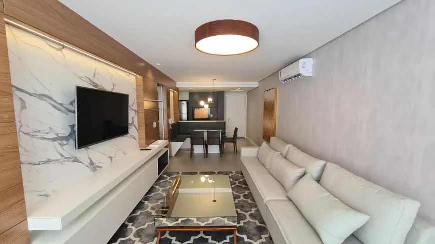 NOVIDADE EXCLUSIVA! Excelente oportunidade de moradia neste amplo, lindo, moderno e confortável apartamento de alto padrão, totalmente mobiliado e equipado, pronto para morar, com 2 dormitórios (1 suíte), 2 banheiros, 7° andar, orientação solar privilegiada (norte/leste), sacada integrada e fechada com vidros temperados, cozinha com bancada e churrasqueira (dutos individualizados), área de serviço integrada, linda vista arborizada e maravilhosa ventilação natural, living amplo com 2 ambientes e canto alemão, 97,05m² privados, 129,17m² total, 2 vagas de garagem com armário embutido, piso porcelanato em todos ambientes, materiais de primeira qualidade, gesso decorado, portas em madeira nobre com acabamento em laca, esquadrias externas em PVC com perfil alemão e excelente conforto térmico e acústico, persianas com controle remoto nos dormitórios, medidores individuais, ambientes climatizados, laje técnica, gás central, água quente, acabamento premium. Esta é a oportunidade perfeita para você que busca um apartamento espaçoso, pronto para morar, bem ventilado e com excelente orientação solar, que deseja deixar os carros na garagem e fazer tudo a pé, pois a localização é muito privilegiada no coração da cidade, além de contemplar um maravilhoso pôr do sol e curtir um churrasquinho gostoso em família! É muita qualidade de vida com praticidade, conforto, lazer, segurança e conveniência!