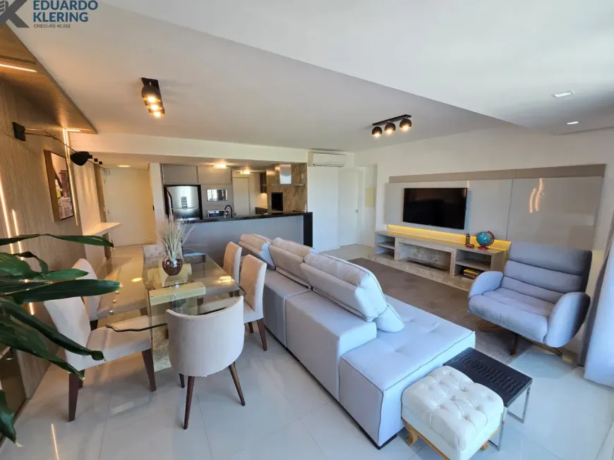 NOVIDADE! Excelente oportunidade de moradia neste amplo, lindo e confortável apartamento de alto padrão, mobiliado e equipado, pronto para morar, com 2 suítes (principal com closet), 2 banheiros com ventilação natural e 1 lavabo, living amplo com lareira ecológica e muita iluminação natural, orientação solar privilegiada (leste/norte), cozinha com churrasqueira e área de serviço independentes, 3º andar, frente para Rua Prata, 120,58m² privados, 143,87m² total, gesso decorado, ambientes climatizados, pisos porcelanato e laminado, materiais de ótima qualidade, água quente, gás central, medidores individuais, esquadrias em PVC de perfil alemão com vidros duplos e excelente conforto térmico e acústico, persianas com controle remoto nos dormitórios, vídeo porteiro, 2 vagas de garagem (lado a lado). Imóvel quitado, escriturado e regularizado, aceita financiamento. Essa é a oportunidade perfeita para você que busca um apartamento espaçoso e com 2 suítes, inclusive a principal com closet, onde você tem a presença do sol em todos os ambientes, num condomínio tranquilo e de infraestrutura funcional, com ótima localização e bastante conveniência no entorno (comércio, serviços, a linda e revitalizada Praça Coração de Maria). Aqui, você terá qualidade de vida com praticidade, conforto e segurança.