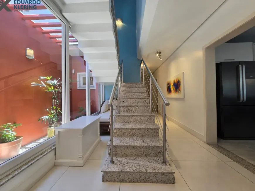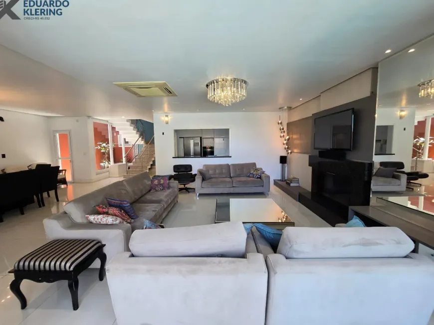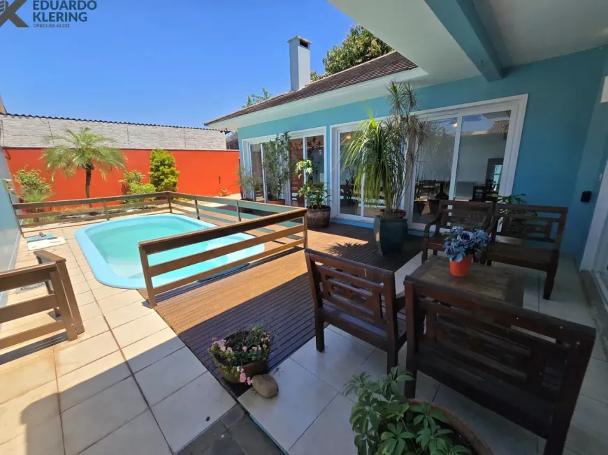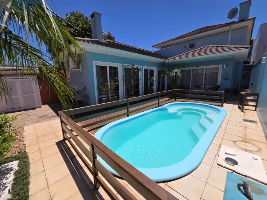 NOVIDADE EXCLUSIVA! Excelente oportunidade de moradia nesta ampla, linda e confortável casa de alto padrão em Esteio, totalmente mobiliada e equipada, pronta para morar, com arquitetura charmosa e 3 suítes (1 master com closet, sacada e hidromassagem / 2 americanas), 4 banheiros, 338,30m², home office, orientação solar privilegiada (frente norte), living amplo com lareira à lenha e vista do jardim, cozinha com passa pratos, área de serviço independente com depósito, ambientes climatizados, materiais de excelente qualidade, gesso decorado, escada com soleira em granito e corrimãos de inox, pisos em porcelanato e laminado, água quente (gás), esquadrias em madeira nobre, janelas em PVC de perfil alemão com excelente conforto térmico e acústico, sistemas de monitoramento e segurança (alarme, câmeras, cerca elétrica e interfone), portões eletrônicos, 3 vagas de garagem, salão de festas com fogão campeiro e churrasqueira à carvão, lindos jardins com plantas, árvores frutíferas (mamão, bergamota e pitanga) e iluminação noturna, deck com piscina de fibra (6×3), com aquecimento por placas solares, varanda integrada ao jardim, iluminação natural favorecida e gostosa ventilação cruzada (janelas nas 4 faces do imóvel), caixa d’água com motor de pressurização para maior conforto. Terreno com 365,20m² (11×33,20) em excelente localização central da cidade, na terceira quadra da Rua Padre Felipe. Imóvel quitado, escriturado e regularizado, aceita financiamento. Esta é a oportunidade perfeita para você que deseja espaço, conforto, lazer e segurança para toda família. Um imóvel silencioso com características exclusivas e bem interessantes, para quem valoriza muito localização e orientação solar. Aqui, você vai poder tomar um chimarrão na sacada e contemplar um maravilhoso pôr do sol, comer uma fruta orgânica com produção própria e saudável, assistir a série da sua preferência e degustar um bom vinho, curtindo o aconchego da lareira acesa, além de tomar um banho gostoso de piscina no calor do verão. É muita privacidade com qualidade de vida!